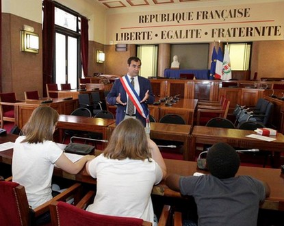 Pendant une heure, Sylvie Pietri, responsable juridique de l’état civil, et Lauriano Azinheirinha, adjoint à l’Éducation et à la Jeunesse de la mairie de Nice, ont répondu aux nombreuses interrogations de 9 élèves de l’école spécialisée du Château, du 23 rue Saint-Joseph. Improvisés « professeurs » pour l’occasion, ils se sont prêtés avec plaisir au jeu des questions-réponses.