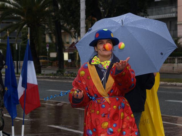 Une forêt de parapluies multicolores abritait les nombreux passants qui avaient bravé le mauvais temps pour se délester de leurs pièces jaunes dans les nombreuses tirelires placées sur le parcours qui allait du Jardin Albert 1er au Négresco.