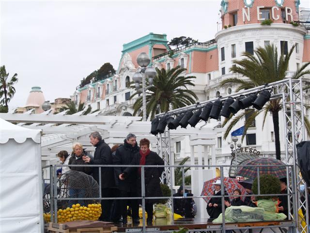 Les premières personnalités arrivèrent sur la manifestation avec Mme Bernadette Chirac accompagnée de Monique Peyrat et de Jacques Peyrat, David Douillet aussi impressionnant sur un podium que sur un tatami alors que les artistes faisaient leur balance sur la grande scène en face de la méditerranée.