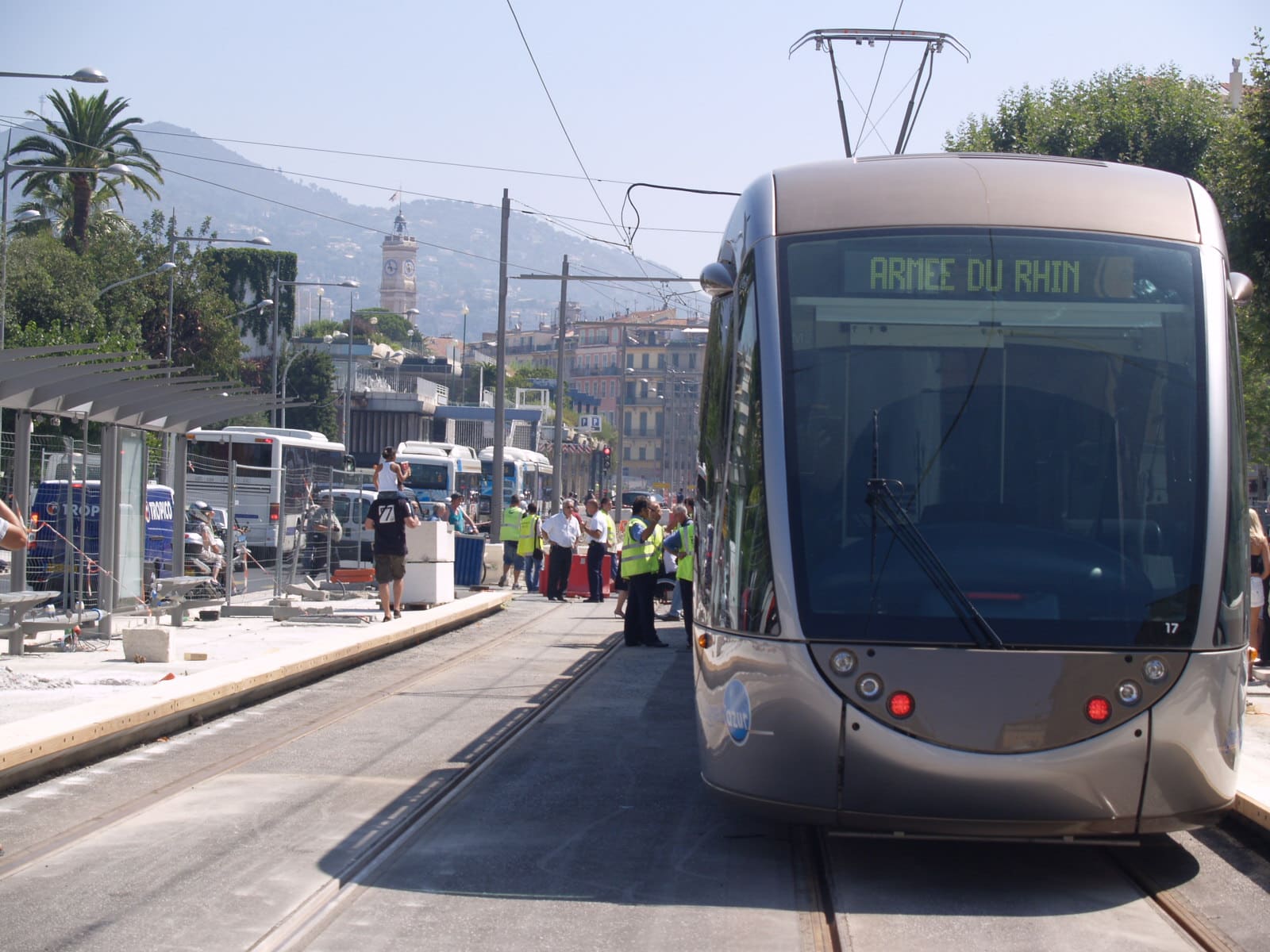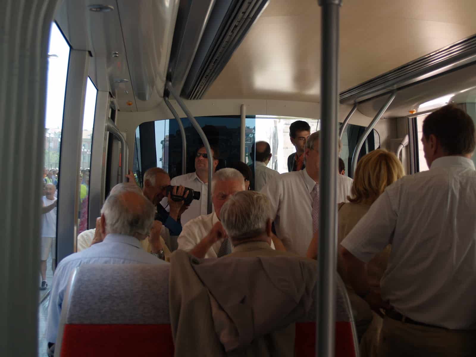 Il ne s’est pas arrêté au Square Boyer. Les habitants de Nice Nord ont abandonné vendredi matin l’exclusivité de voir circuler le Tramway de Nice. Tous les Niçois en ont profité jusqu’à la place Armée du Rhin. Une première saluée par les applaudissements des badauds et le contentement non dissimulée du Sénateur Maire de Nice et Président de la CANCA Jacques Peyrat. Accompagné par les représentants de la CANCA et du Tramway, il a traversé la Place Masséna à l’intérieur de la rame alimentée par un système de batterie autonome.