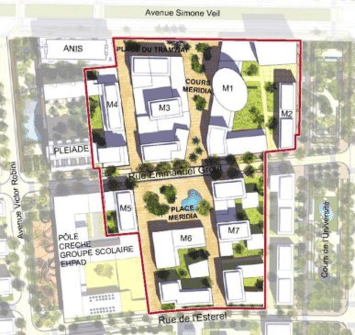 Joia Méridia, nouvelle centralité qui se déploiera sur 73 500m² SDP, accueillera 75 % de logements, 12 % d’hôtellerie et para-hôtellerie, 10 % de commerces et services de proximité, 3 % de tertiaire, un parking central d’au moins 1 200 places, dont 700 places minimum mutualisées et accessibles au public.