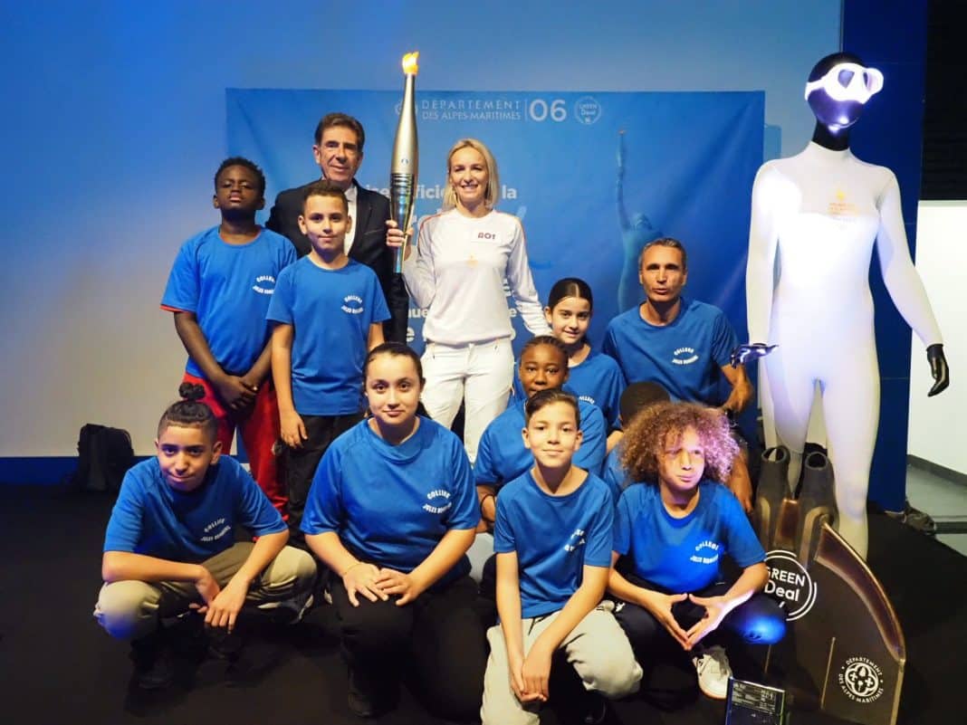 Charles Ange Ginésy, Président du Département des Alpes-Maritimes, a officiellement remis cette torche, ainsi que la combinaison de plongée d’Alice Modolo, vice-championne du monde d’apnée 2023, lors d’une cérémonie en présence de nombreuses personnalités sportives.