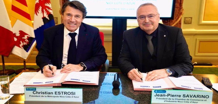 Un accord cadre entre la CCI Cote d’Azur et la Metropole a été signé par les deux présidents Jean-Pierre Savarino et Christian Estrosi.