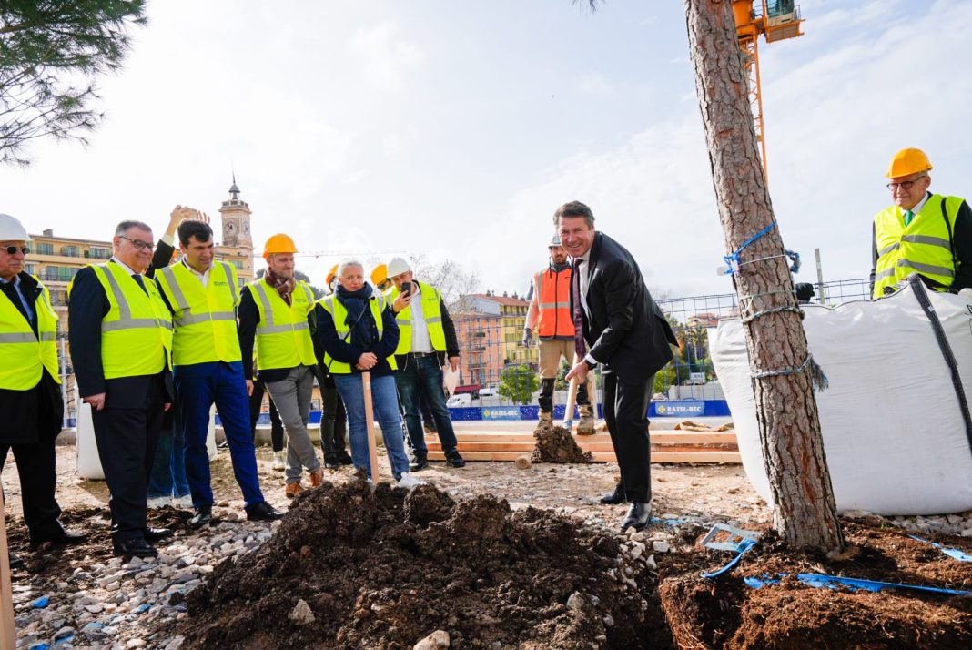 Ce vendredi 1er mars 2024, Christian Estrosi, maire de Nice, a planté symboliquement le premier pin parasol sur l’esplanade de la Bourgada.