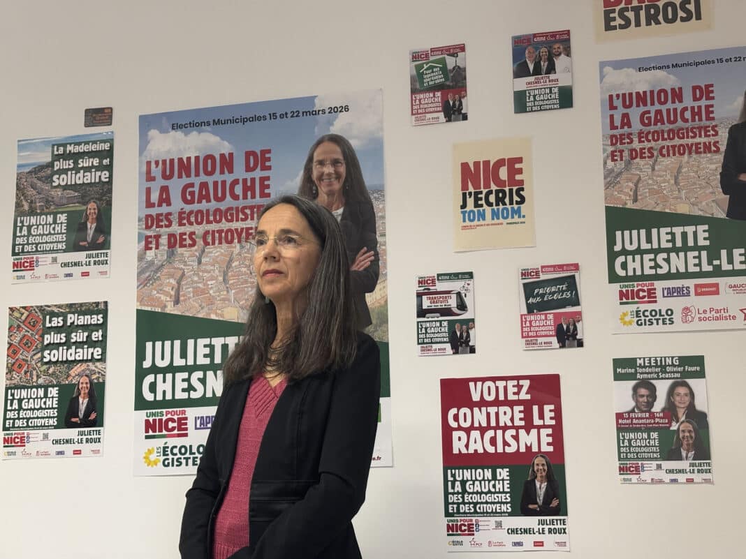 Dès le début, Juliette Chesnel-Le Roux fixe le ton. Avec une touche d’humour, la candidate en tête de liste déclare : « Je m’engage à commencer ponctuellement, contrairement à Christian Estrosi qui débute toujours avec un retard d’une demi-heure. » Une touche d’humour qui introduit un conférence dense, collective et fermement politique. Jusqu’à présent, trois leaders ont été mis en avant. Pour cette occasion, la candidate a voulu étendre le contexte. « Je souhaitais aujourd’hui aborder le sujet d’autres candidats qui illustrent la diversité de notre liste. Parce que nous représentons la fusion de la gauche et des écologistes. » Sans dévoiler la liste complète des 69 candidats, Juliette Chesnel-Le Roux souligne la diversité de l’équipe : partis politiques (PS, PCF, Écologistes, L’Après), syndicalistes, professionnels du terrain et militants associatifs. « La société civile, c’est nous tous, par notre militantisme. » Fonctionnaires, enseignants, soignants, entrepreneurs, infirmiers, océanographe ou avocat : Unis pour Nice revendique une diversité de parcours et de compétences, pensée comme un atout pour gouverner. Julien Picot, un fonctionnaire territorial et activiste des zones populaires, est le premier à intervenir en présentant les suggestions concernant la mobilité. « Dès notre prise de fonction, nous instaurerons la gratuité des transports afin de garantir un accès à tous les habitants de Nice. » Visées déclarées : augmentation du pouvoir d’achat et amélioration de la qualité de l’air. Le postulant critique l’absence d’action de la majorité en place sur divers territoires. « À l’opposé de la droite de Christian Estrosi, qui a promis un tramway à l’Ariane depuis plus de 25 ans, nous souhaitons son instauration sans délai. Les résidents de l’Ariane ne sont pas des citoyens de seconde classe. »