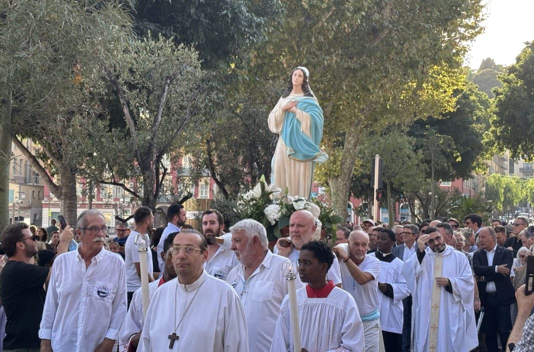 Comme chaque année, la ville de Nice commémore l’Assomption de la Vierge Marie. Les fidèles niçois avaient rendez-vous à l’église Notre-Dame du Port, à 18 heures. Un départ de l’église, pour rejoindre le quai d’Entrecasteaux, était prévu pour 18 h 30. Les croyants sont arrivés au compte-goutte. À quelques minutes du départ, l’église était pleine, certains devaient attendre, à l’extérieur.