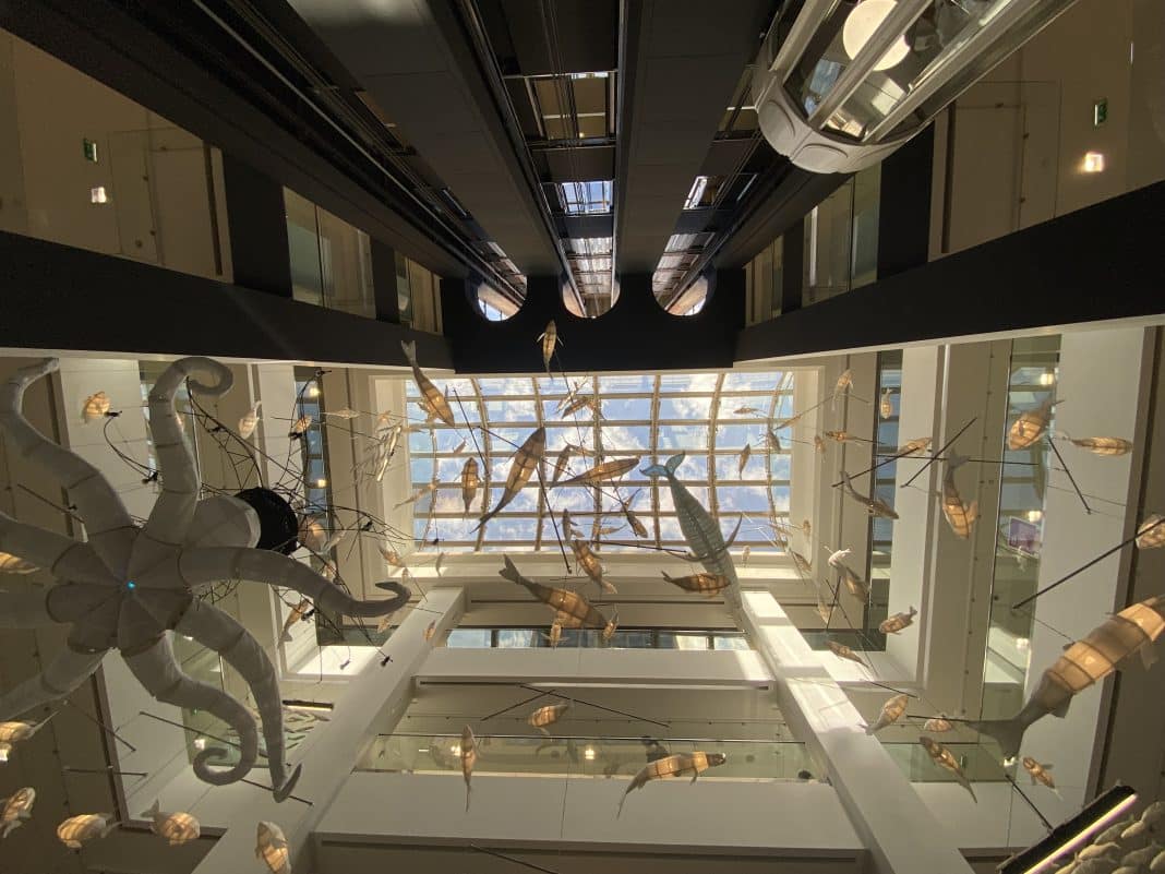 « Trop beau ! Ça représente quoi ? » Autour de la trémie centrale de Nicétoile, les questions fusent et les têtes vacillent de haut en bas. Pour cause, Ichtus : une œuvre cinétique de 13m de hauteur. Réalisée par l’artiste plasticien Daniel Mestanza, elle semble émerveiller le public, qui prend le temps de s’arrêter afin de l’admirer. Ichtus représente un ballet aquatique aérien avec des dizaines poissons lumineux animés. « Je ne suis pas certaine de comprendre le concept. Mais on retrouve clairement le thème océanique, qui est au coeur des préoccupations en ce moment dans notre ville », souffle Marie, native de Nice.
