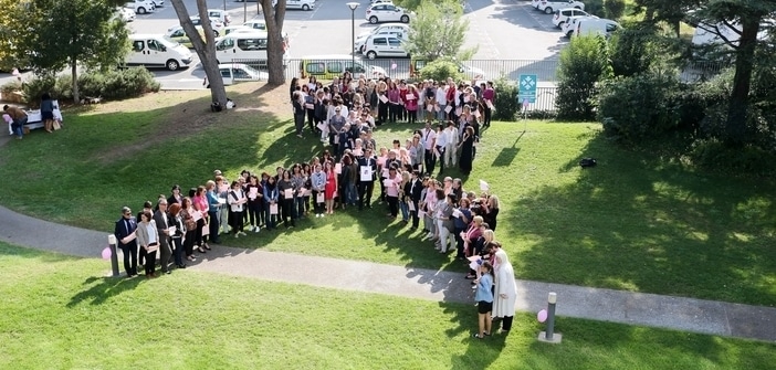 Une chaine humaine s’est organisée hier dans les jardins du Département à l’occasion de la campagne Octobre Rose, mois national de mobilisation en faveur du dépistage du cancer du sein.