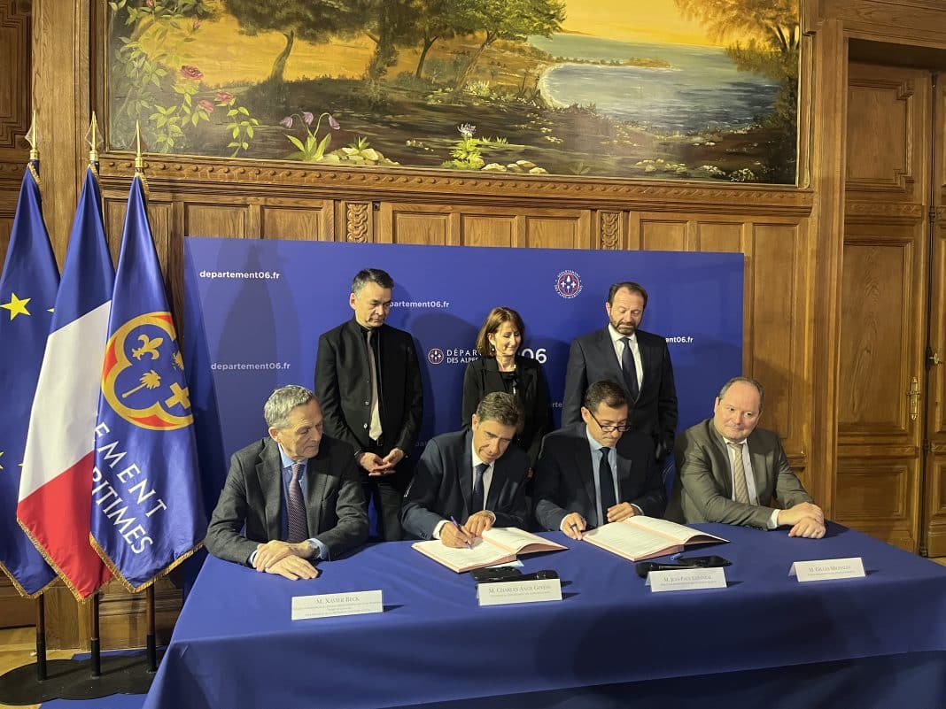 Dans le cadre des politiques GREEN DEAL et SMART Deal du département, Charles Ange Ginésy, directeur du département des Alpes-Maritimes, Jean-Paul Catanese, directeur départemental des finances publiques, Xavier Beck et Gilles Michalec se sont réunis pour la signature de cette convention. Son déploiement est prévu à partir du 1er avril 2024.