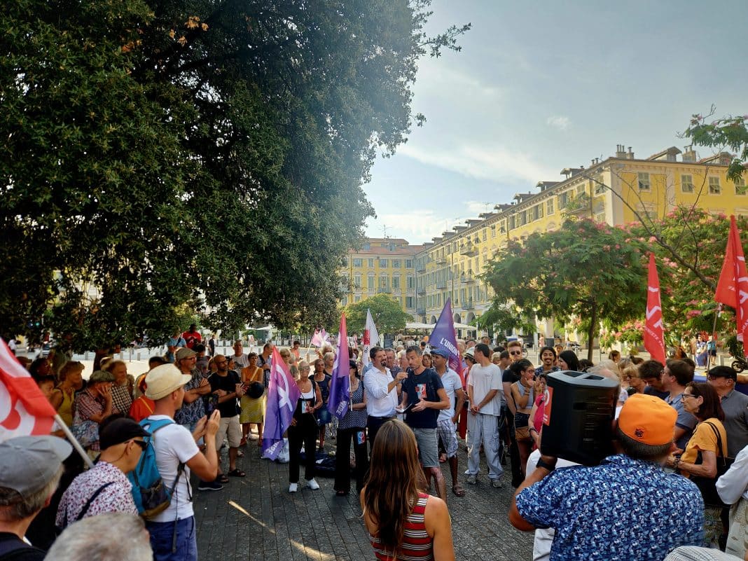 En fin d’après-midi, Nice a battu au rythme de la contestation citoyenne. Une centaine de personnes, bravant la chaleur estivale, s’est réunie sur la place Garibaldi. La foule était diverse, unie par une même volonté : faire respecter leur vote suite aux dernières législatives et par conséquent faire respecter le suffrage universel.