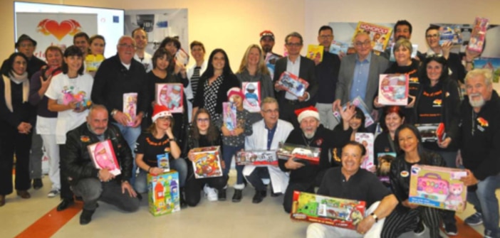 Les bénévoles de l’association les Harley du coeur se sont réunis autour de leur président Claude Abejan, pour remettre au Centre Méditerrannéen de Protonthérapie de Haute énergie à Nice, dirigé par le Centre Antoine Lacassagne, près de 350 jouets neufs pour les enfants qui sont hospitalisés.