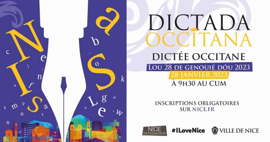 La Ville de Nice remet le couvert avec la Dictée occitane, compétition incontournable, en partenariat avec un collectif d’associations niçoises (Institut d’Études Occitanes, Association des Professeurs de langues Régionales, Fédération des Associations du Comté de Nice, Collectif des Arts Traditionnels, Nissart Per Tougiou et Nissa Pantai). Christian Estrosi met en avant depuis 2008 la valorisation de la langue, de la culture et des traditions niçoises. Monsieur le Maire s’engage en faveur de la préservation de notre patrimoine matériel et immatériel, aux côtés de son adjoint, Jean-Luc Gagliolo, délégué à l’Éducation et à l’Identité niçoise.