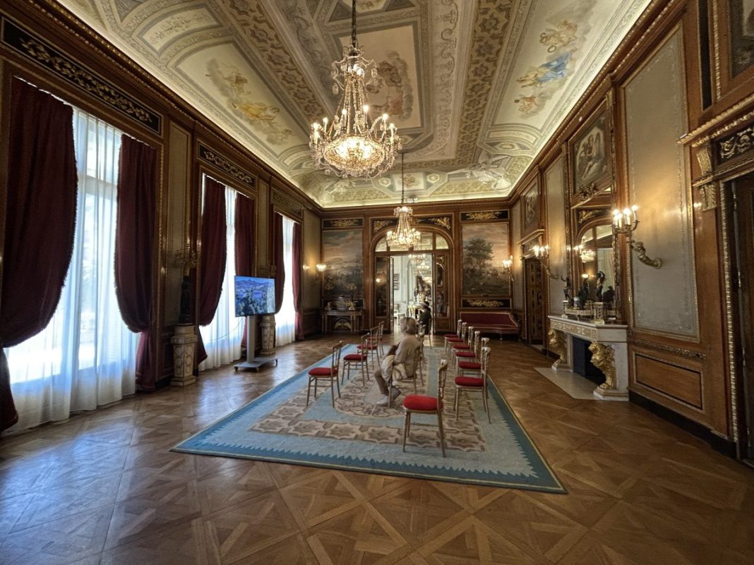 Sous la lumière de la verrière emblématique de la Villa, des photographies encadrées représentent le couple royal et les époux Estrosi, dans les jardins face à la Promenade des Anglais. Quelques pas plus loin, dans le cabinet de lecture sont exposés les signatures de Charles et Camilla dans le livre d’or du Mémorial d’hommage aux victimes du 14 juillet. Un lieu de recueillement qui se situe dans la cour du musée.
