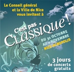 L’édition 2008 de C’est pas classique a le mérite de présenter un programme riche et varié. Chaque jour, de 13h30 à minuit, les 12 salles du palais Acropolis abriteront successivement des concerts symphoniques, des master classes de piano, des ateliers pratiques et des contes musicaux. Mais aussi, plus surprenant, des matchs d’improvisation et des concours de Djs. Des spectacles interactifs et ludiques qui ont pour mission, d’une part, attiser la curiosité du grand public, et de l’autre réconcilier les néophytes avec un style musical dont l’approche est dite habituellement des plus pénibles.