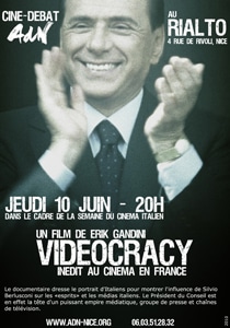 VIDEOCRACY est un documentaire qui dresse le portrait d’Italiens pour montrer l’influence de Silvio Berlusconi sur les ‘esprits’ et médias italiens. Le Président du Conseil est en effet à la tête d’un puissant empire médiatique, groupe de presse et chaìnes de télévision.