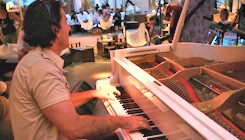 Les 14 et 15 août, changement ! Ce sera au tour de Loïc Pontieux de se produire pour la première fois sur la scène de la Note Bleue. Le batteur d’origine niçoise y présentera son univers jazz world. Un univers dont les compositions sont essentiellement inspirées de voyages. Car Loïc Pontieux est un vrai globetrotteur. Les paysages et cultures découverts pendant ses périples sont une source intarissable d’inspiration pour le batteur.