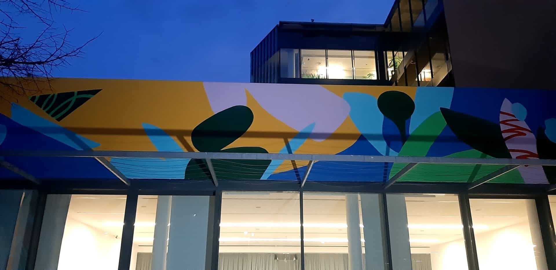 Les poteaux qui se trouvent à l’extérieur de l’Institut ont même été décorés, pour rappeler la fresque.