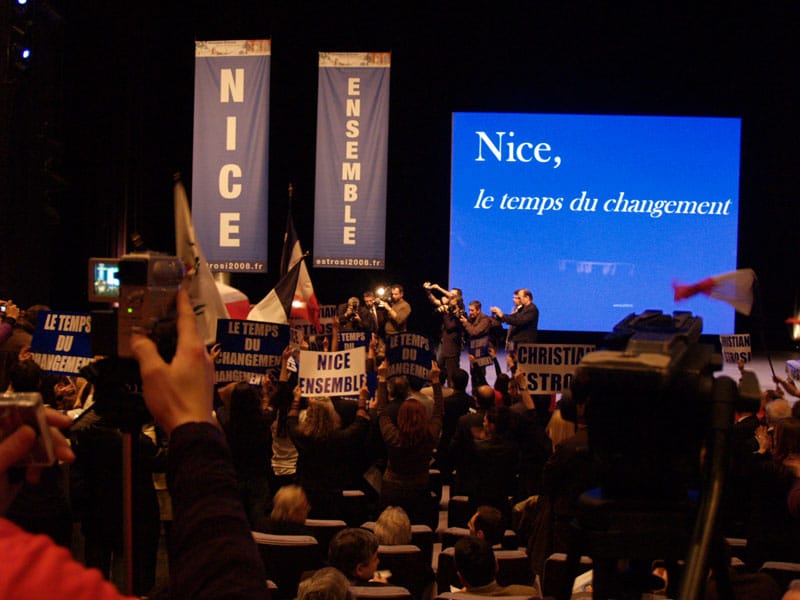 Christian Estrosi, entre proximité, audace et ambition a présenté son projet pour Nice. Le Show était bien ficelé. Les intervenants politiques ou non (Denise Fabre, Jean Marc Giaume, Maurice Cohen, Eric Ciotti, Rudy Salles entre autres) ont bien su justifier leur engagement et la salle était évidemment conquise. Les plus fervents sont restés attentifs pendant plus de deux heures. D’autres se sont esquivés avant la fin. Il reste 28 jours au candidat UMP pour convaincre la majorité des Niçois. Et là, le timing est le même pour tous les candidats.
