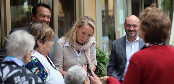 La jeune candidate frontiste s’est attaché à bien faire et a passé une bonne partie du week-end à arpenter les rues des villages de l’arrière pays niçois en compagnie de son chaperon local, Olivier Bettati, qui connait bien les lieux.