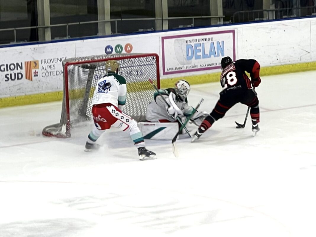 Après deux défaites consécutives, les Aigles ont dû redoubler d’efforts pour remonter la pente. Les hockeyeurs Niçois vont se donner les moyens de leur réussite. Ils inscrivent deux buts supplémentaires lors de ce deuxième tiers-temps. Marc-André Levesque marque le deuxième but des Aigles assisté par Andrei Rychagov et Ondrej Kopta. Très rapidement, son coéquipier l’attaquant Daniel Babka, prend le même chemin après sept minutes de jeu. Nice fait cavalier seul et mène (3-0).