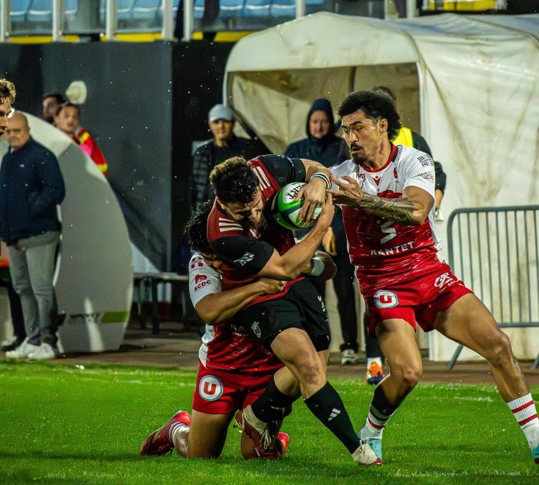 Après leur défaite de la semaine dernière à Suresnes, les Niçois voulaient reprendre le chemin de la victoire devant son public. Toujours invaincus aux Arboras, les hommes d’Alexandre Compan ont maitrisé leur sujet et ont remporté un onzième succès sur leurs terres. Pourtant, ce sont les Savoyards qui ouvrent le score grâce à une pénalité. Mais comme souvent, les Niçois répondent avec du jeu et passent derrière la ligne pour la première fois du match. C’est le capitaine du soir Tom Murday qui inscrit cet essai, bien servi par Delas. Après neuf minutes de jeu, les Niçois reprennent l’avantage. Les visiteurs n’abdiquent pas et reviennent à un petit point grâce à une nouvelle pénalité.