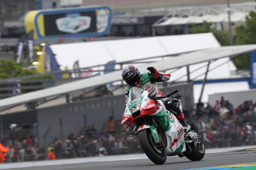 Après le chao du début de course, Johann Zarco décide de ne pas rentrer pour rester en pneus pluie. Très mauvaise stratégie pour le pilote qui tire tout droit et repars en dix-septième position. Trois pilotes sont rentrés pour changer leur moto, lui redonnant la quatorzième place. Avec la chute de Fabio Quartararo et Brad Binder, il reprend la treizième place. La pluie recommence à tomber et certains pilotes rentrent encore. Johann Zarco se retrouve donc cinquième. Avec les pneus pluies, il ne rentre pas pour changer de moto et se retrouve en tête du Grand Prix de France, avec huit secondes d’avance. Alors qu’il reste dix tours, le Cannois a toujours 12 secondes d’avance. S’il ne fait pas d’erreur, il peut aller chercher sa deuxième victoire dans la catégorie reine. Et c’est exactement ce qu’il fait, après sa première victoire il y a deux ans, après 71 ans sans victoire d’un Français en MotoGP en France, Johann Zarco gagne le Grand Prix de France 2025.