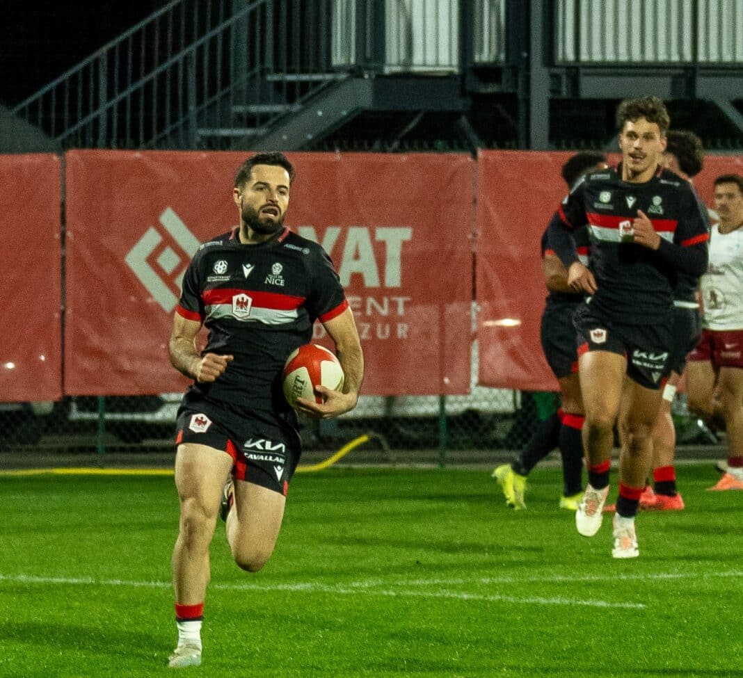 Le début de match est poussif des deux côtés. Les Niçois prennent rapidement la mesure de leur adversaire adversaire sans parvenir à concrétiser. Après vingt minutes d’un début de match maîtrisé, Jean‑Pascal Barraque finit par ouvrir la marque logiquement au regard de la domination des Azuréens. Butteur ce soir en l’absence d’Owen Williams sorti sur blessure face à Massy le week-end dernier, l’ouvreur maralpin passe une première pénalité (3‑0). Dix minutes plus tard, les Niçois accélèrent : le pilier de Nissa Rugby, Farai Tapuwa Mudariki conclut une action bien construite et inscrit le premier essai du match, transformé par Jean-Pascal Barraque (10‑0, 30e).