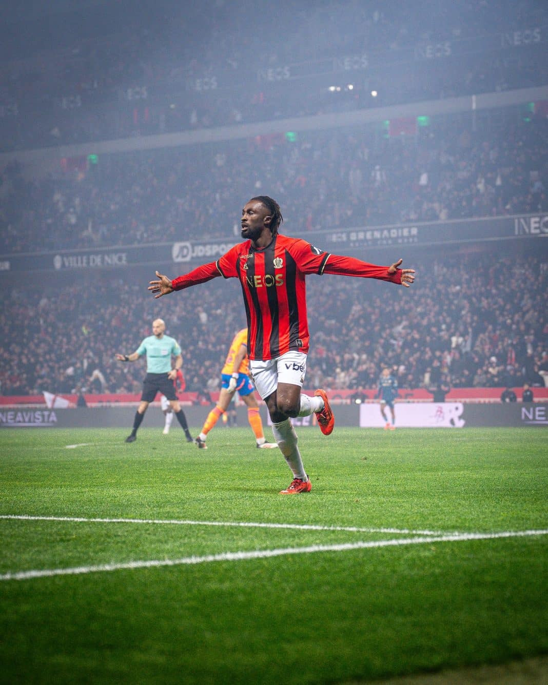 Nice : Bulka – Bombito, Ndayishimiye, Dante (C) – Clauss, Boudaoui, Santamaria, Bard – Guessand, Laborde, Diop