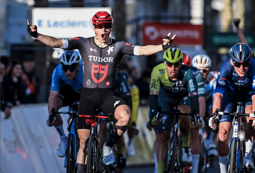 Dans les dix derniers kilomètres, la cadence s’accentue à l’approche du sprint. Bien amené par ses coéquipiers, c’est le Néerlandais Arvid de Kleijn (Tudor) qui s’impose sur la ligne devant Laurence Pithie (Groupama FDJ). Ce dernier en profite pour rafler le maillot jaune à Olav Kooij, vainqueur hier. Mathieu Burgaudeau est récompensé du prix de la combativité en plus de son maillot à pois qu’il a vaillamment glané.