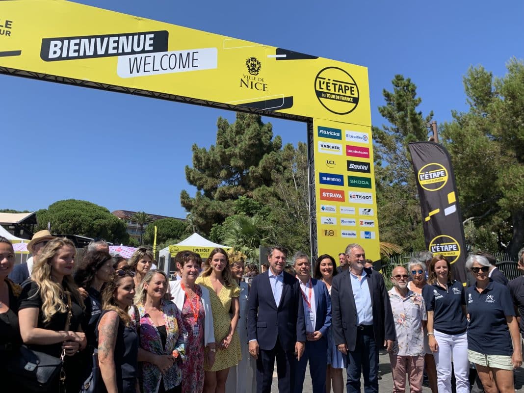 Le village du Tour de France s’est installé sur la coulée verte à Nice. Il est ouvert de 10h à 21h vendredi et de 10h à 18h samedi. En tout, ce sont pas moins de 12 000 m2 pour découvrir ou redécouvrir le monde du cyclisme en s’amusant grâce à une multitude de stands et d’activités. Le village se découpe en deux zones : une pour les professionnels participants à l’Étape et une pour les amateurs de cyclisme.