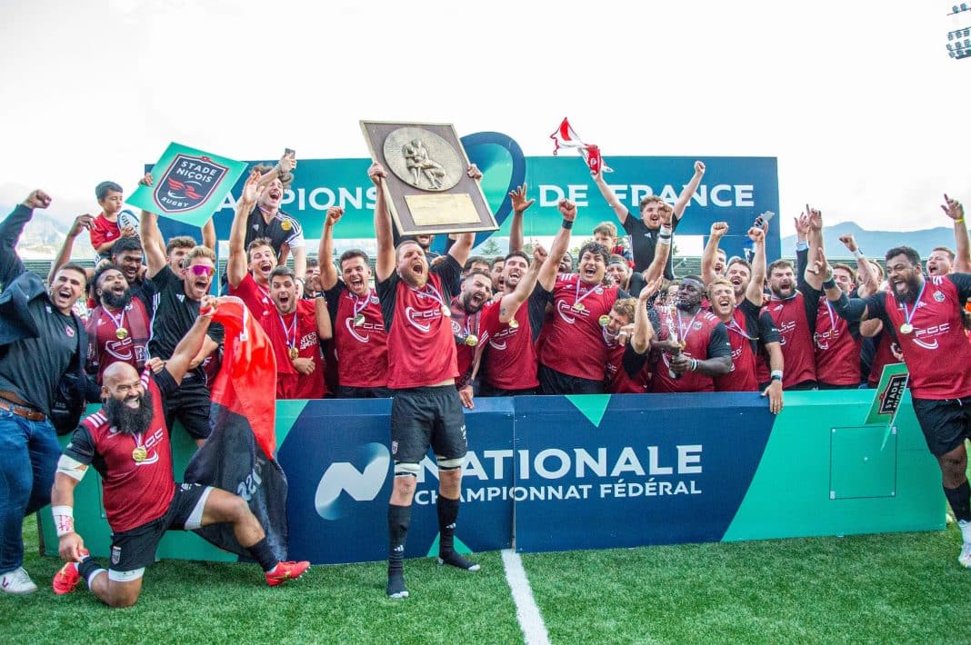 Au terme d’un match accroché, le Stade Niçois force la décision dans les 10 dernières minutes et s’offre le premier titre de Nationale de son histoire et par la même occasion la montée en Pro D2.