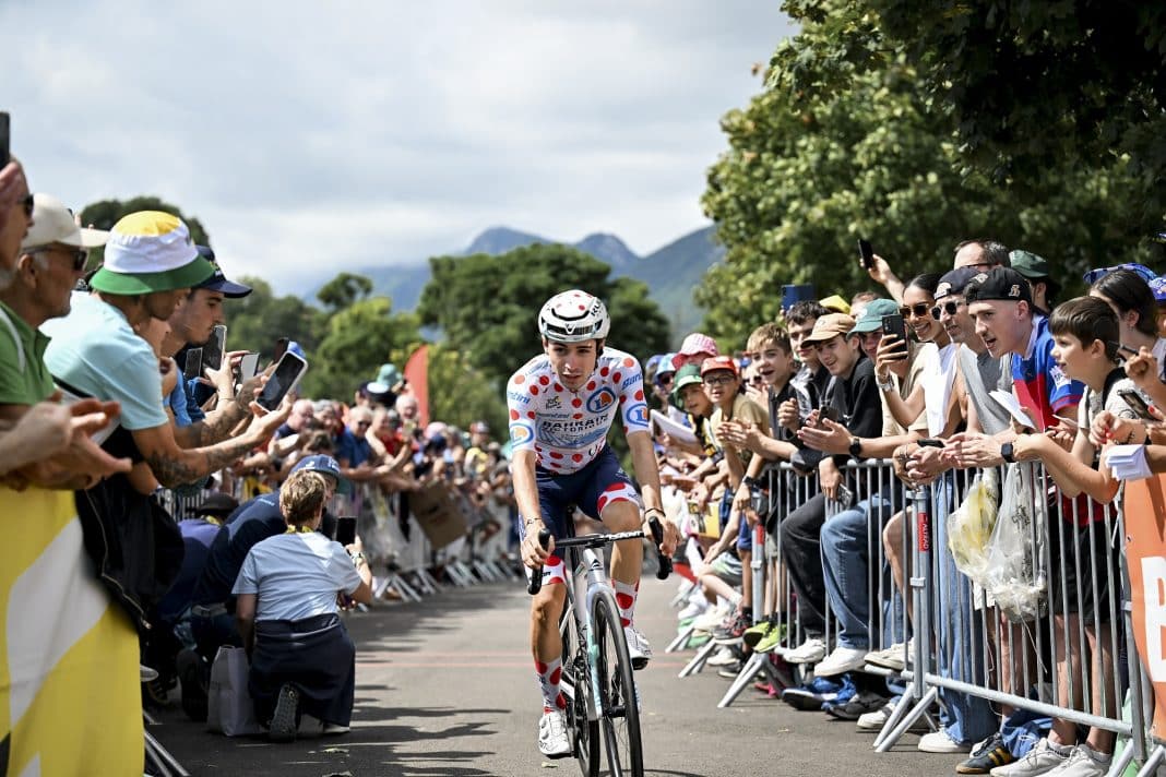 Car dans cette étape les difficultés se sont enchaînées. Et seulement six kilomètres après l’ascension du col du Pré, se dressait le Cormet de Roselend. Une difficulté de 2e catégorie offrant cinq points au coureur qui passe en tête à son sommet. Le visage marqué par l’effort, Lenny Martinez se fait décrocher une première fois avant de revenir au courage pour passer en tête du Cormet de Roselend. L’écart avec Tadej Pogacar se réduit une nouvelle fois à huit petits points.