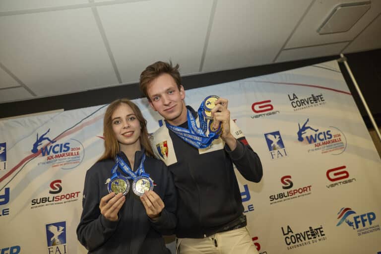 Sofya Pauzin et Adrien Gallot sur le podium, médailles en main.