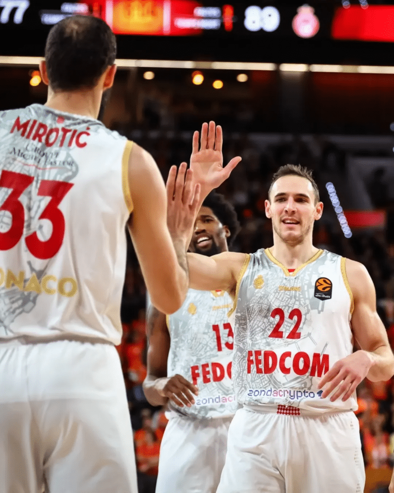 Nikola Mirotic et Terry Tarpey avec le maillot blanc de la Roca Team.